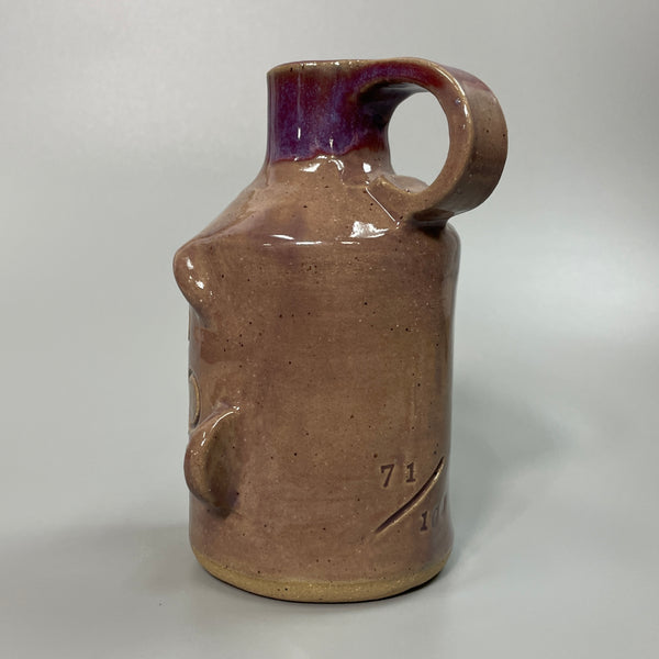Sweet dreams are made of this 1 lb 1 oz Little Face Jug. Standing at 5.5" tall, it features a charming lavender glaze and is uniquely crafted with speckled glaze. Perfect for adding a touch of whimsy to any collection. (Dreams sold separately!)